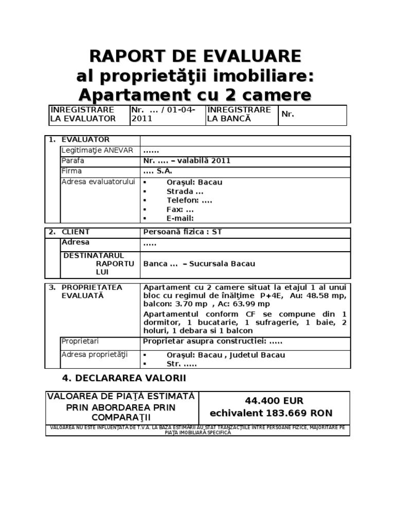 Raport De Evaluare Apartament Masina Docx Universitatea U201e