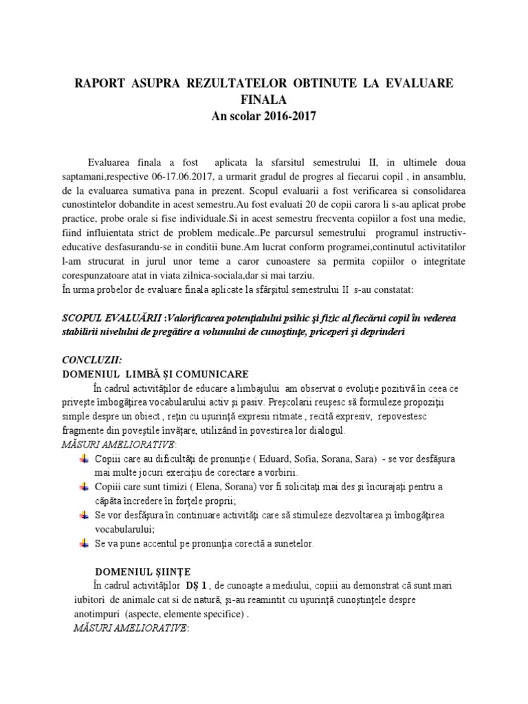 Raport De Evaluare Sumativa
