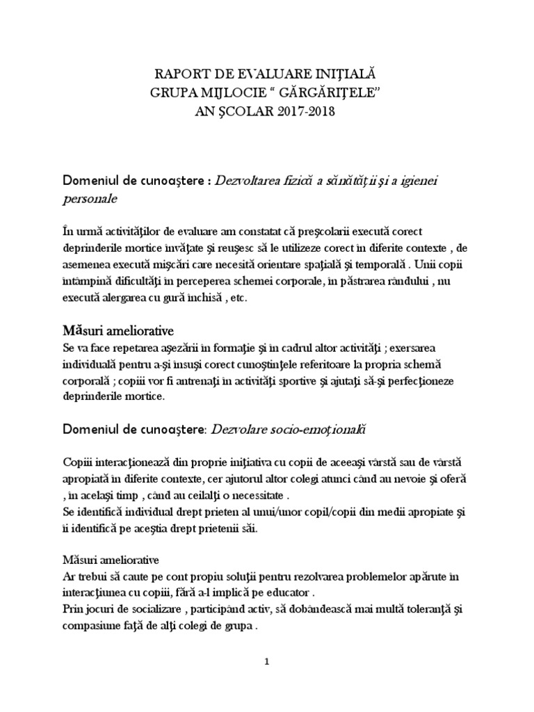 Evaluare Initiala Raport Gradinita 2012