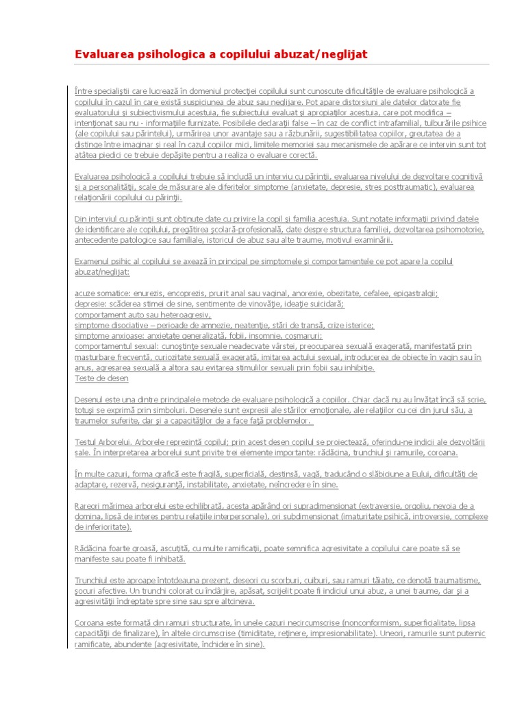 Evaluarea Psihologica A Copilului Abuzat