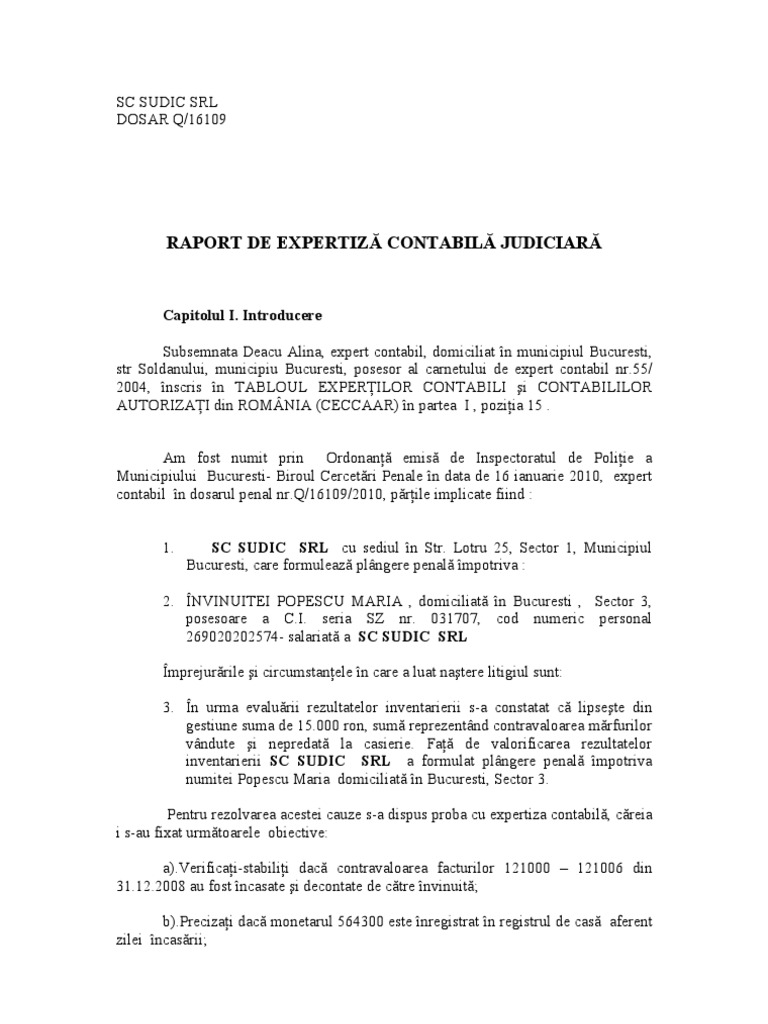 Model Raport De Expertiza Contabila Judiciara