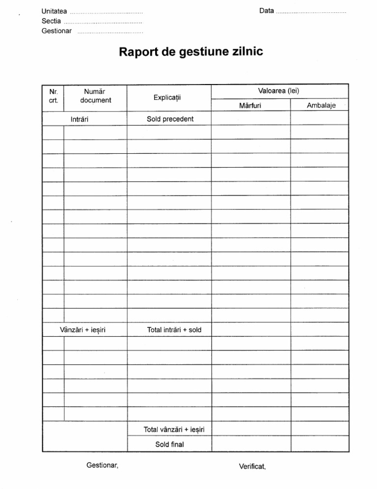 Raport De Gestiune Zilnic Autocopiativa Tipografia Fistem