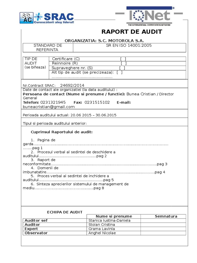 De Audit Raport De Audit Audit Dovezi De Conformitate Fisa