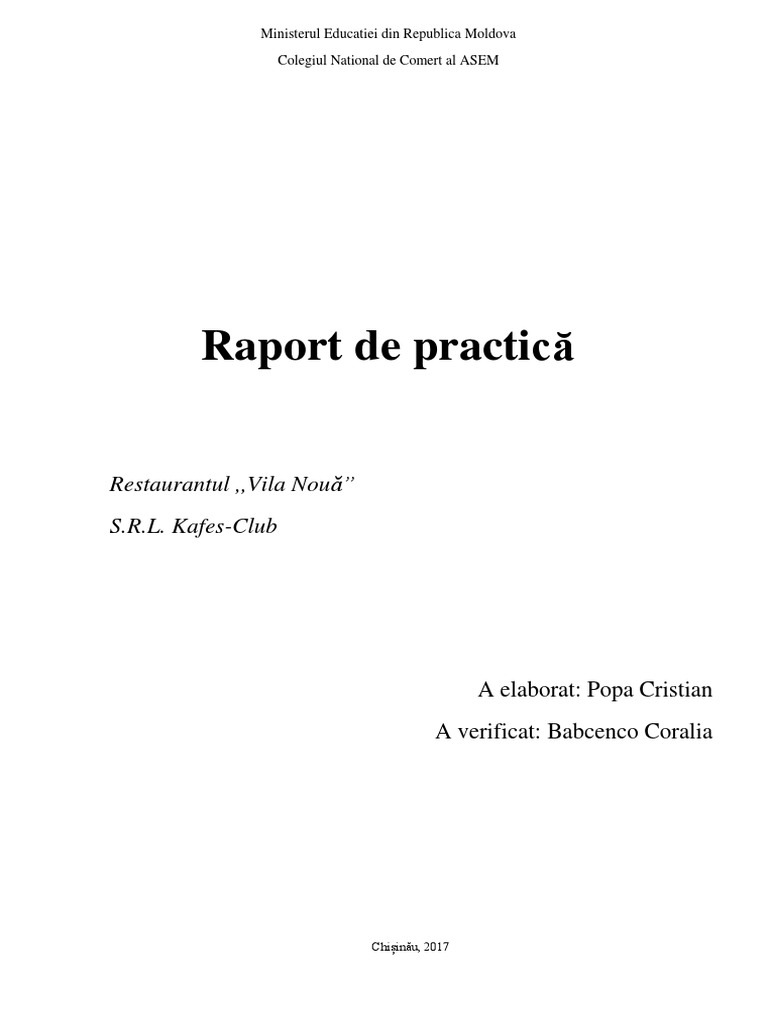 Raport De Practica Foaie De Titlu