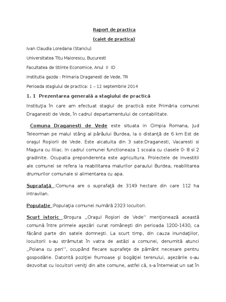 Doc Raport Practica Anul Ii Laura Tarta Academia Edu