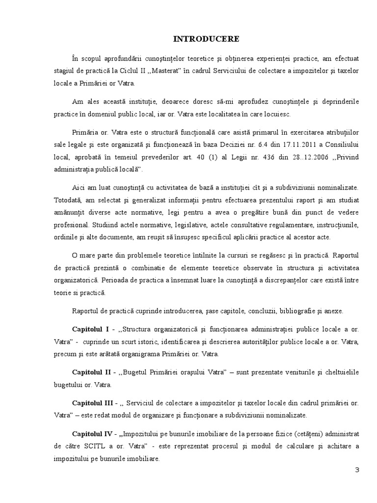 Proiect Raport De Practica Primaria Sectorului Nr 3 Bucuresti