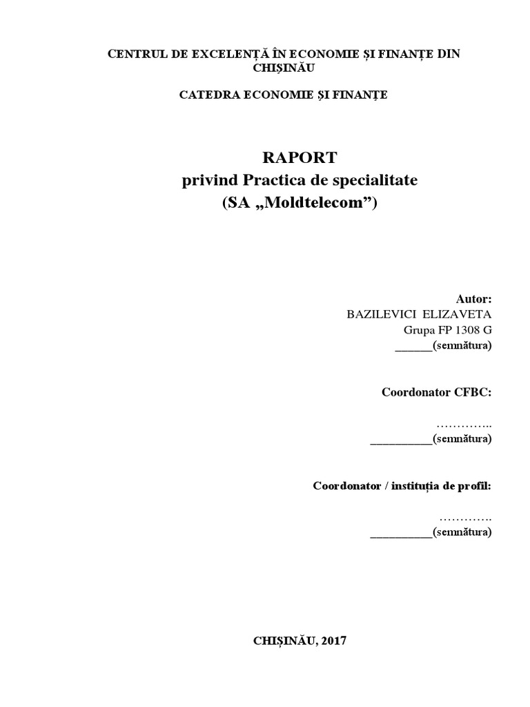 Raport De Practica Anul Iii La Moldindconbank Doc Document