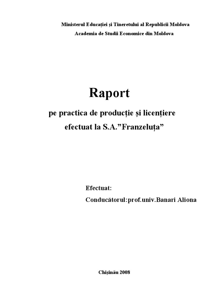 Raport Practica De Productie Si Licentiere Sa Franzeluta Pdf