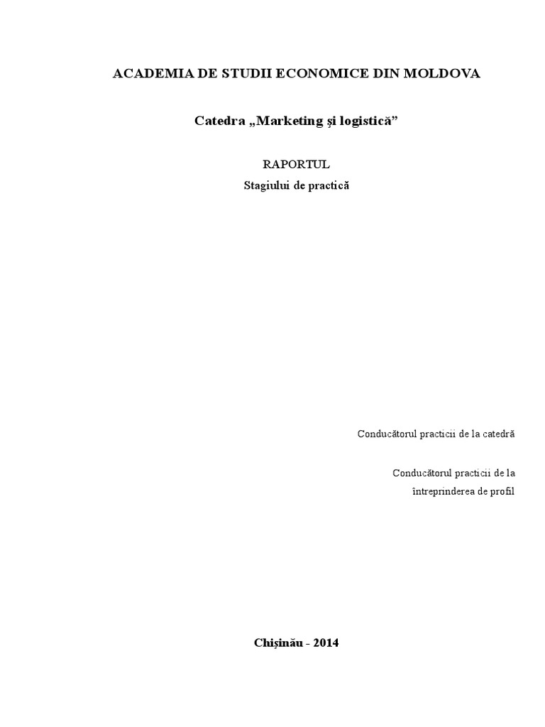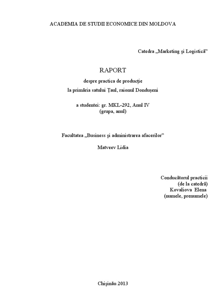 Referat Raport Cu Privire La Desfasurarea Practicii De Licenta In