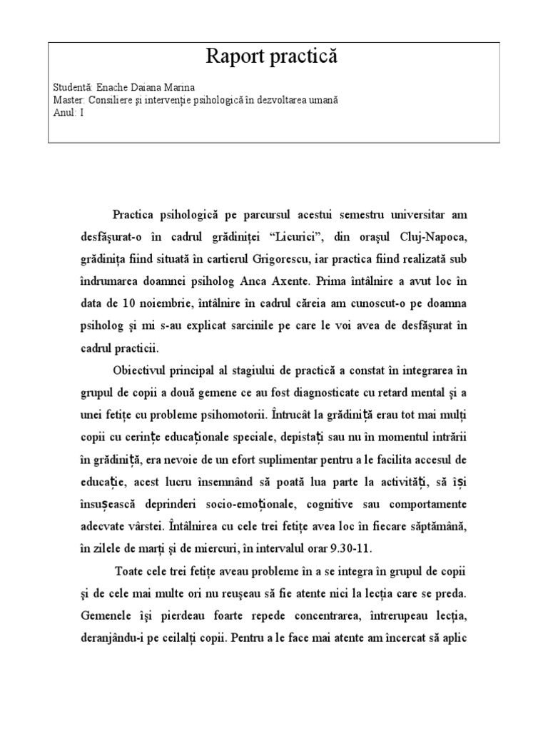 Proiect Raport De Practica Psihologica Psihologie 64470