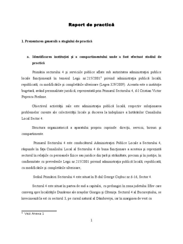 Proiect Raport De Practica Primaria Sectorului 1 Bucuresti Stiinta Administratiei 194652