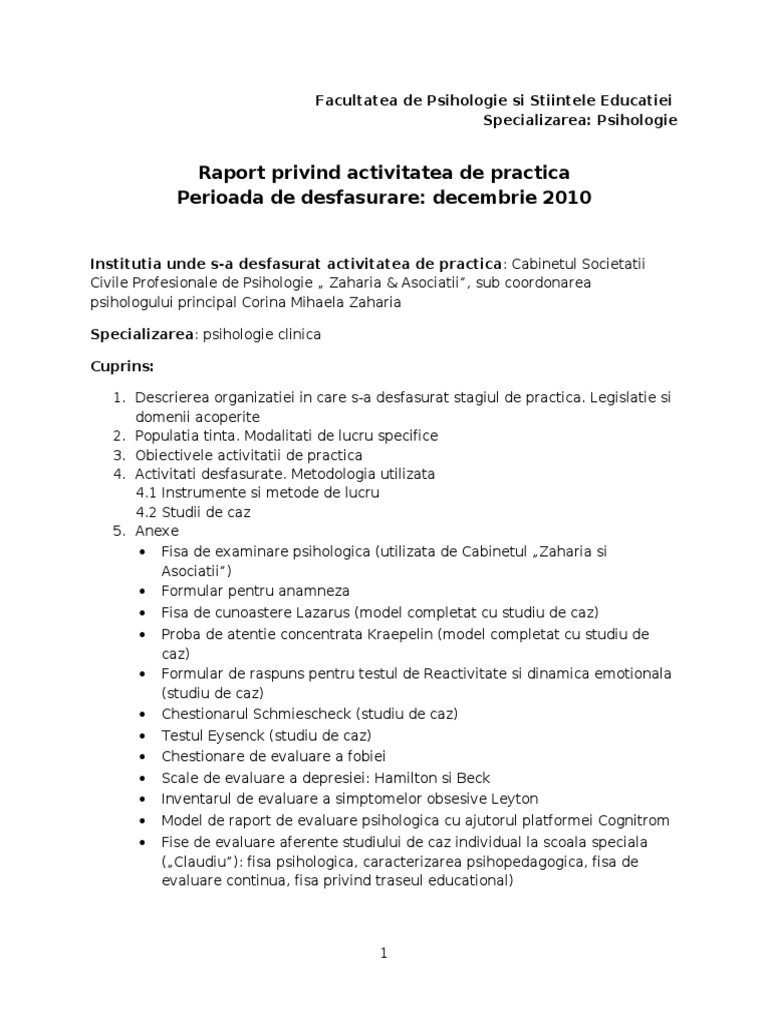 Proiect Raport De Practica Psihologica Psihologie 64470