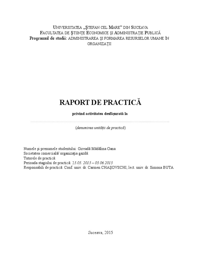 Model Prima Pagina Raport Practica
