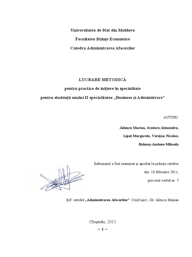 Indrumar Pentru Practica In Business Si Administrare Usm