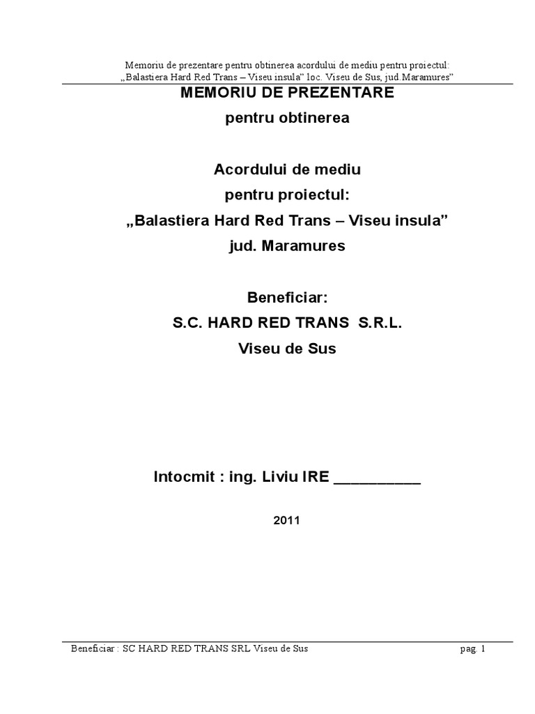 Mp 2011 02 01 Hard Red Memoriu Tehnic Acord De Mediu Balastiera