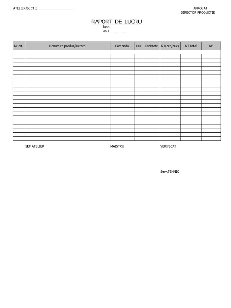 Raport De Productie Model