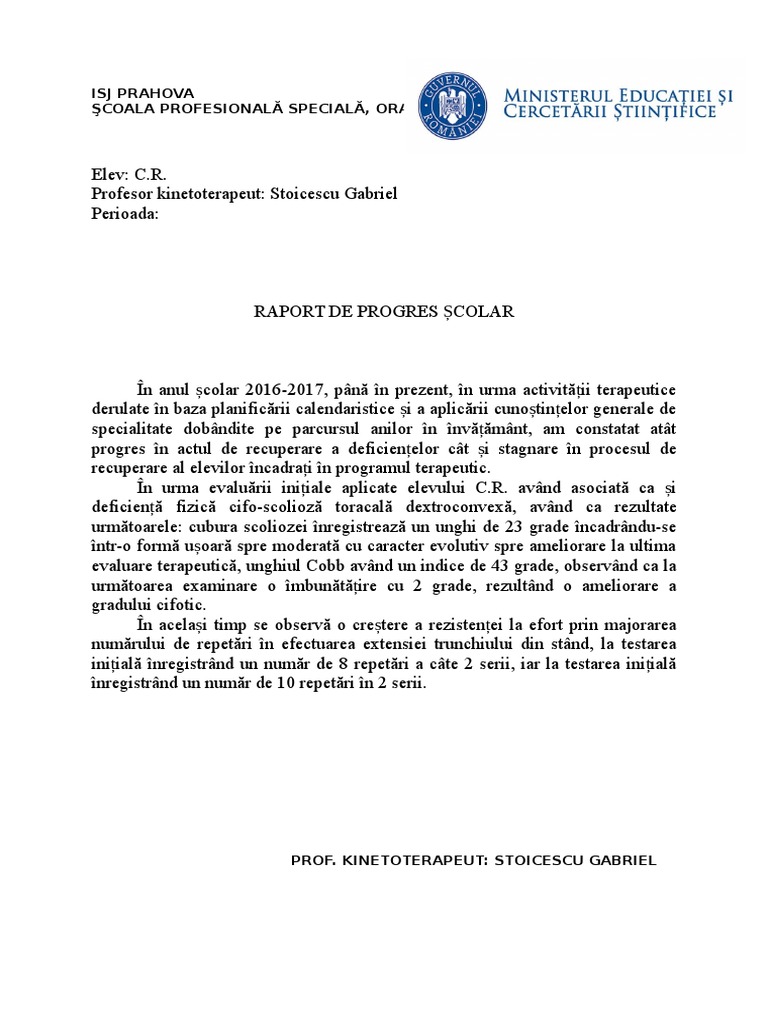 Raport De Progres Scolar Definitivat