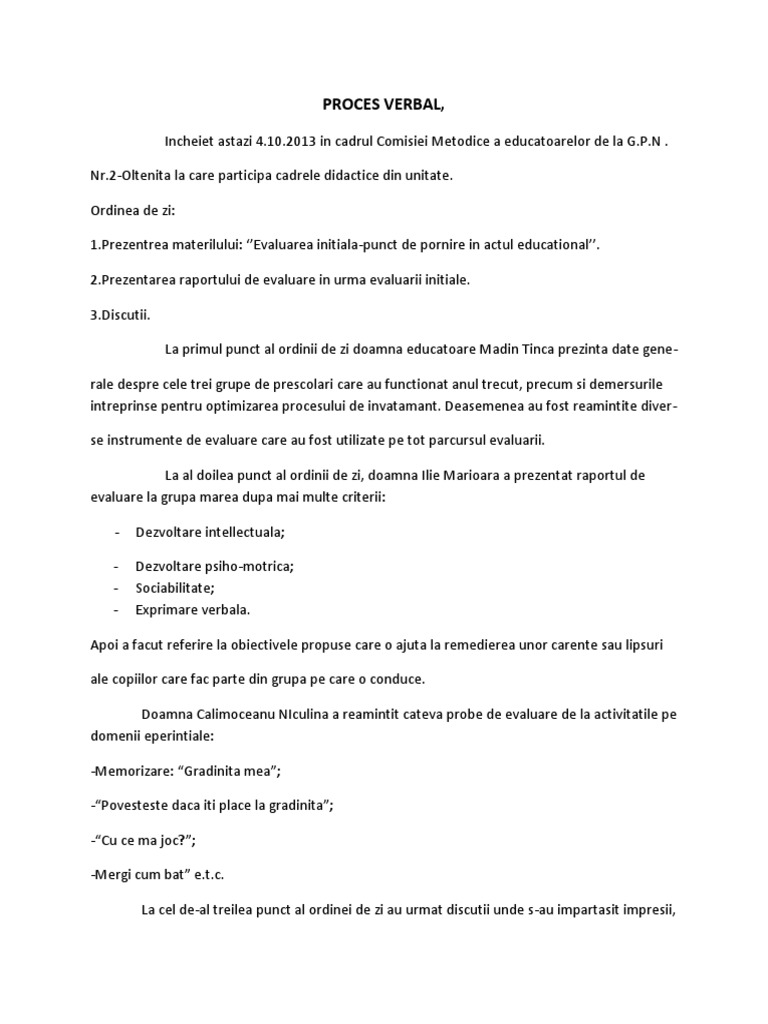Raport Evaluare Initiala Comisia Metodica Educatoare