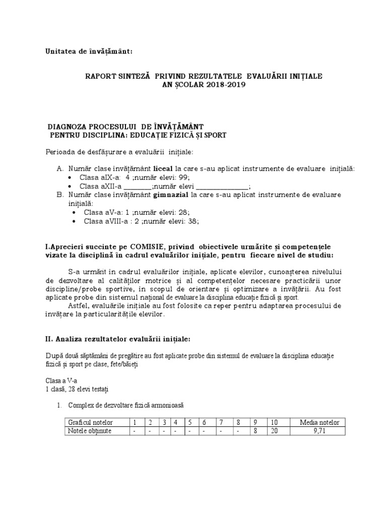 Raport Evaluare Initiala Educatie Fizica Si Sport