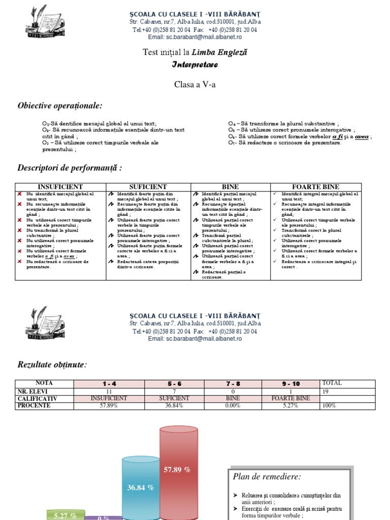 Interpretare Test Iniţial La Limba Engleză Clasa A 5 A