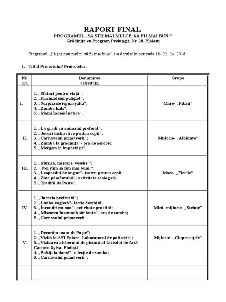 Raport Final școala Altfel Să știm Mai Multe Să Fim Mai Buni