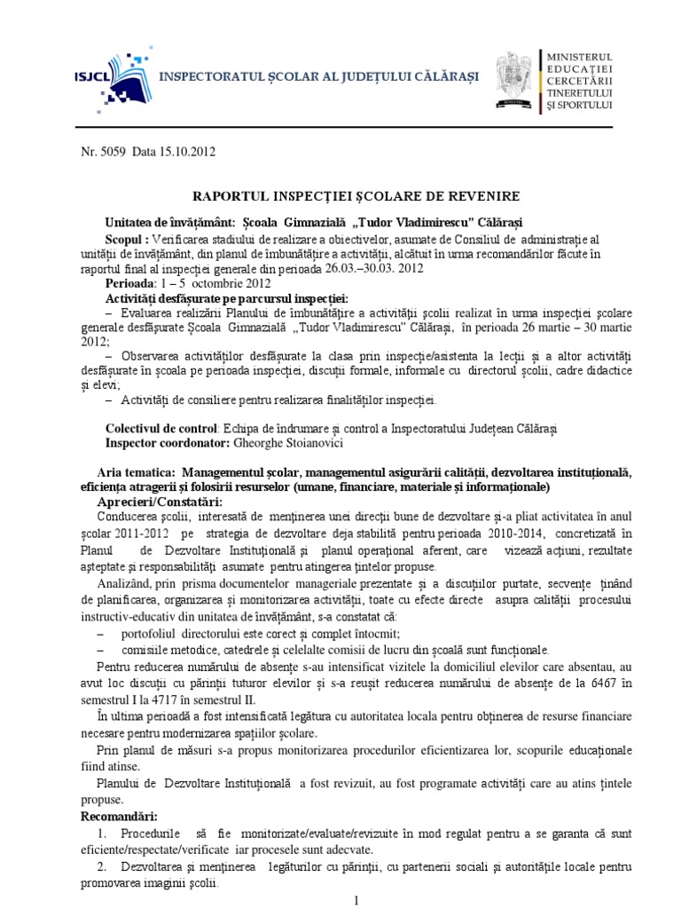 Raport Inspectie Scolara Completat