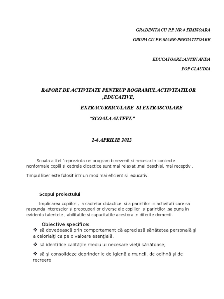 Doc Raport Scoala Altfel Matuse Alexandru Petre Academia Edu