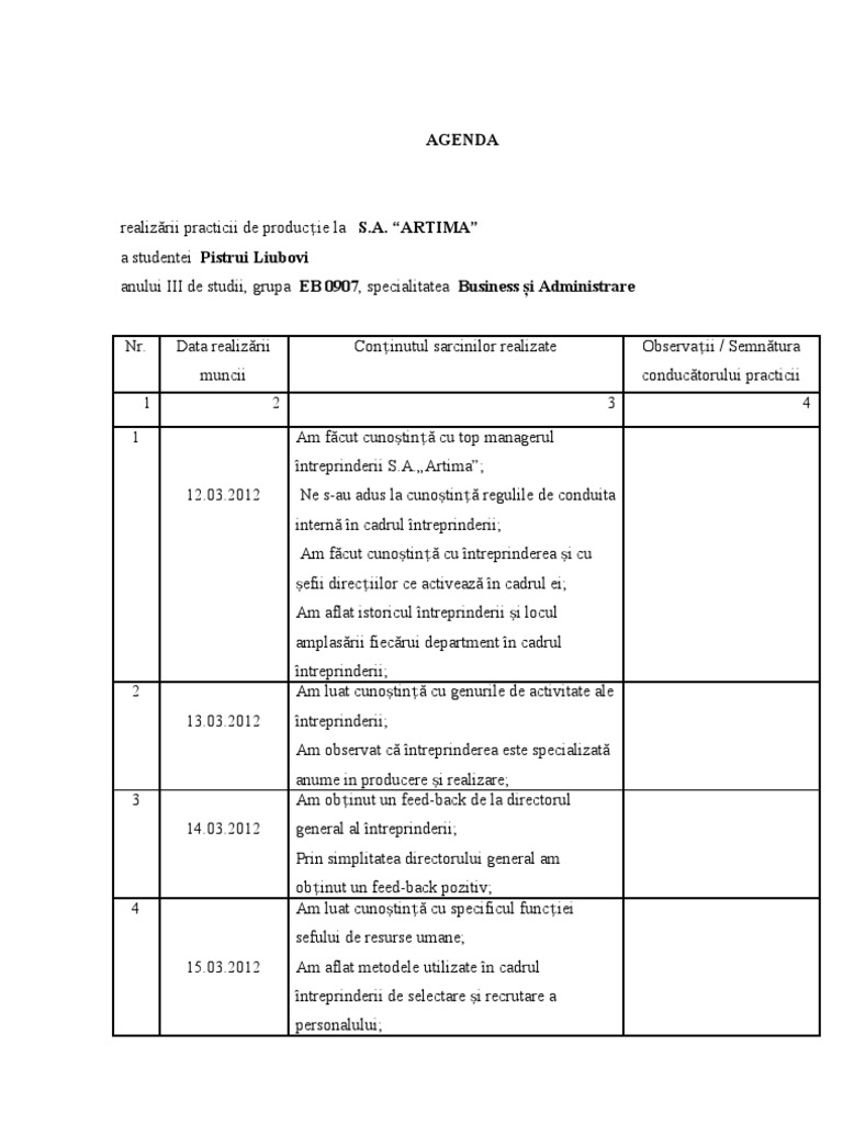 Agenda Zilnica La Practica Ii
