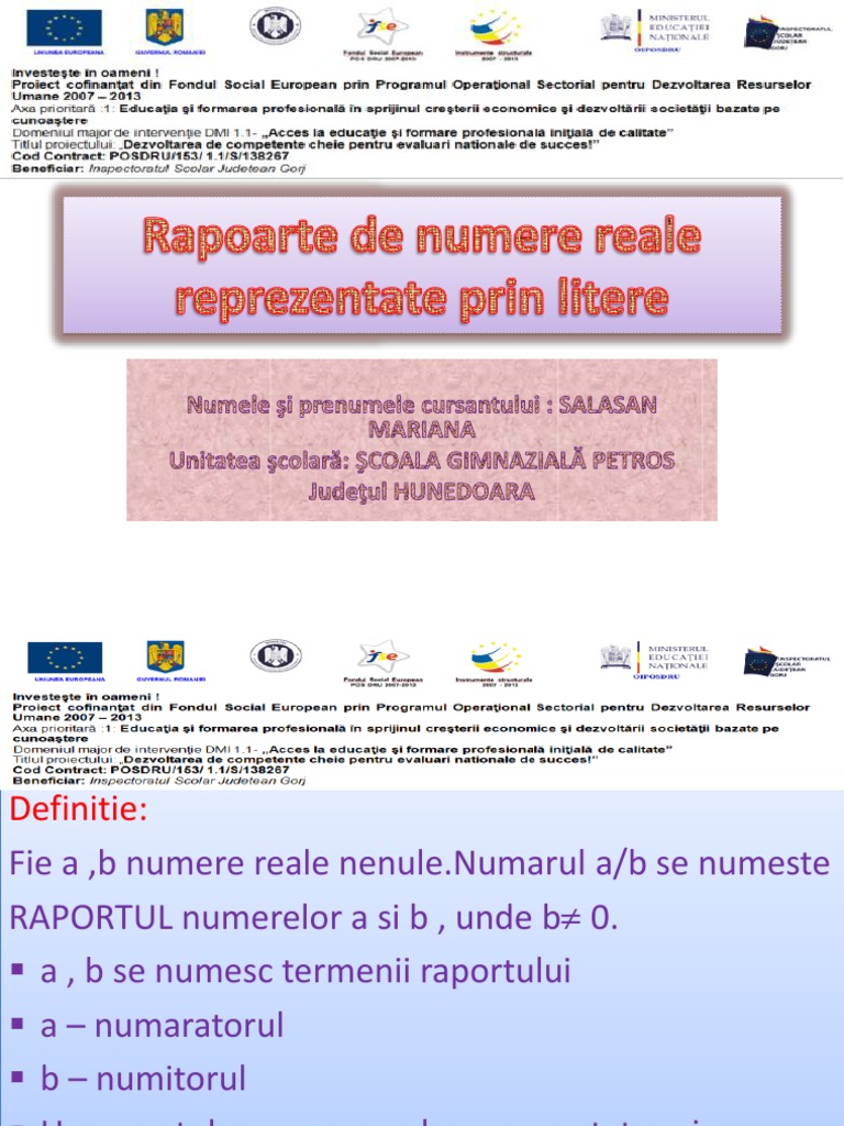Rapoarte De Numere Reale Reprezentate Prin Litere Mate Pedia