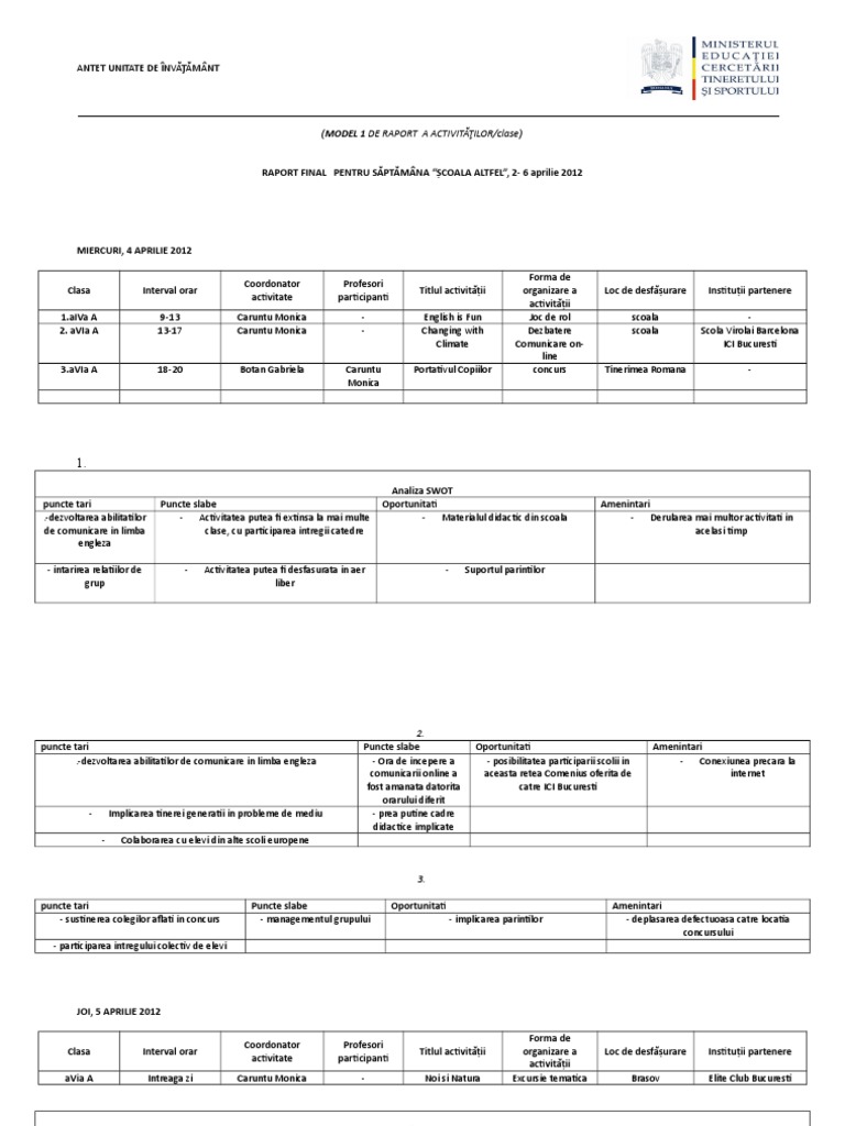 Model De Raport Final Scoala Altfel Completat