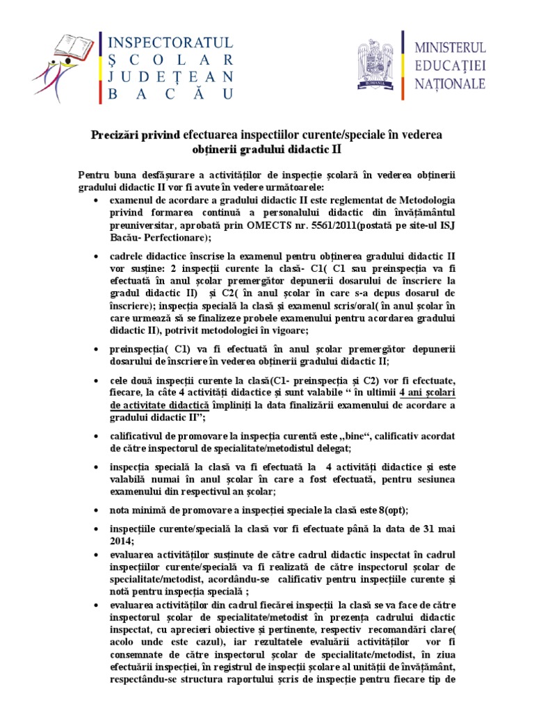 Precizări Efectuare Inspectii Grad Ii
