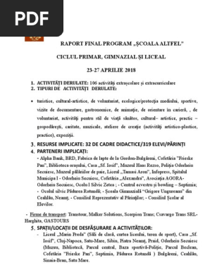 Raport Final Program Scoala Altfel Scoala Gimnaziala Nicolae Stoleru Baia