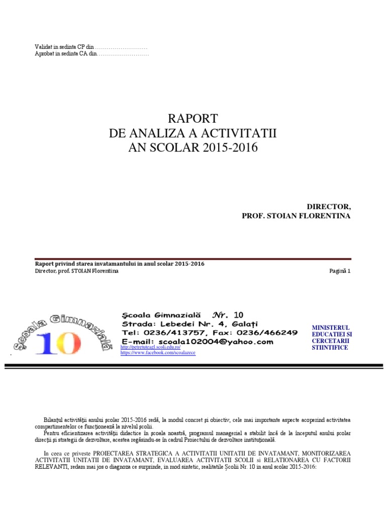 Raport Analiza 2015 2016 Scoala 10