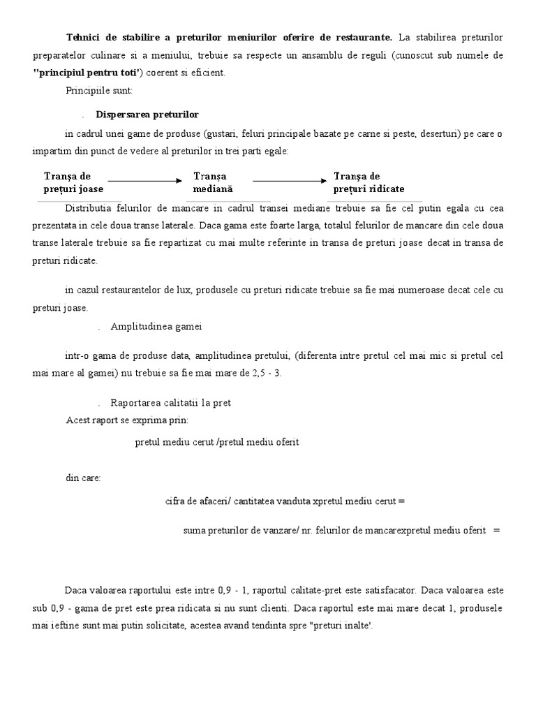 Tehnici De Stabilire A Preturilor Meniurilor Oferire De Restauran