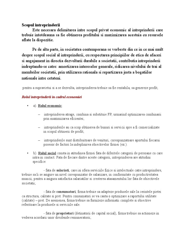 Scopul Intreprinderii