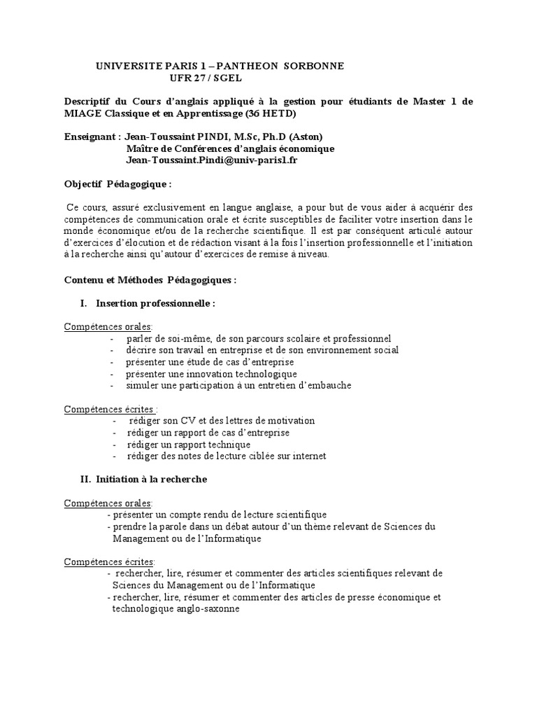 Plan Cours D Anglais Sorbonne Miage Pedagogie Langue Anglaise