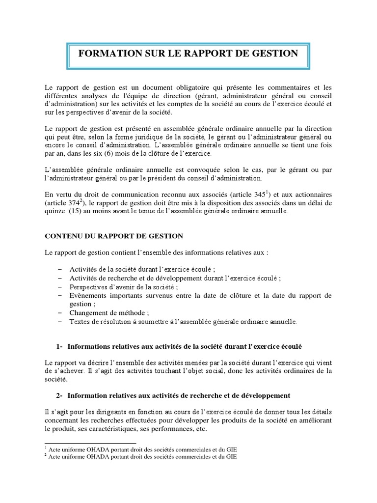 Formation Rapport De Gestion Investir Actionnaire Free 30