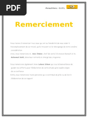 Rapport De Stage Renault Maroc Renault Maroc Essai Gratuit De 30 Jours Scribd