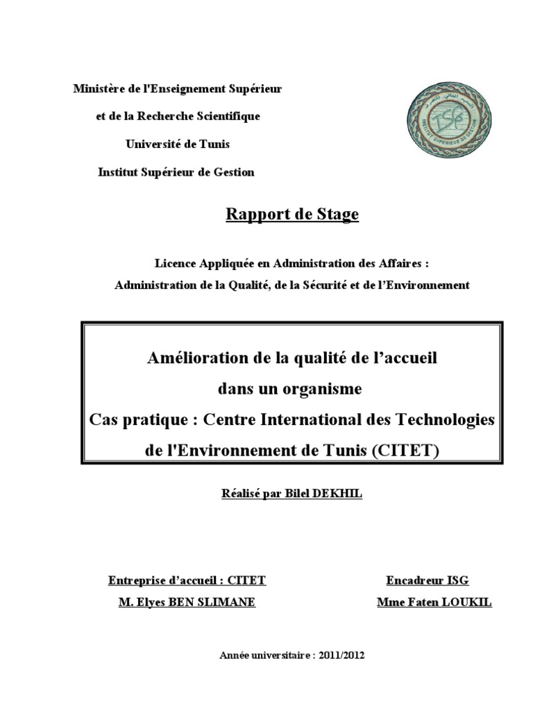 Rapport De Stage Bilel Dekhil 3 Eme Qse Management De La