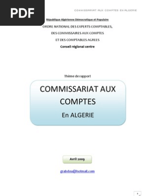 Commissariat Aux Comptes En Algerie Abduu Avril 2009 Controle