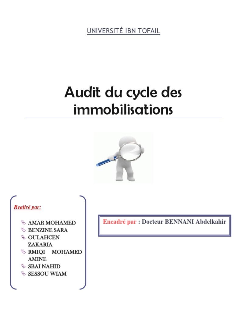 Audit Du Cycle Des Immobilisations Rapport Immobilisations