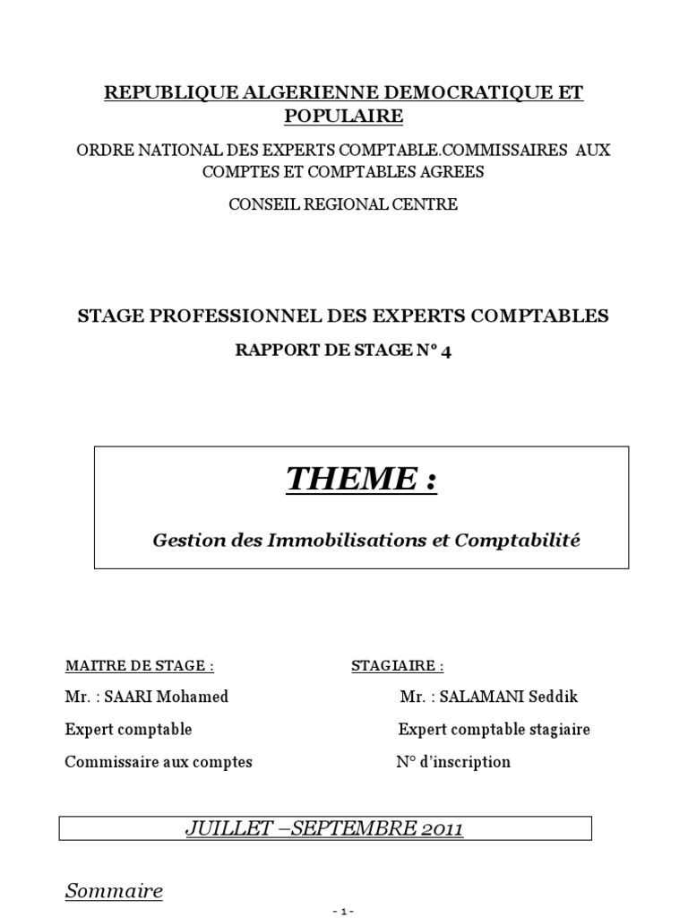 Gestion Des Immobilisations Et Comptabiliteport Selamanicor
