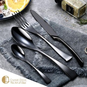 Set Tacamuri 24 Piese Otel Inoxidabil Negru Decorațiuni