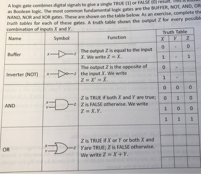 Solved A Logic Gate Combines Digital Signals To Give A Si