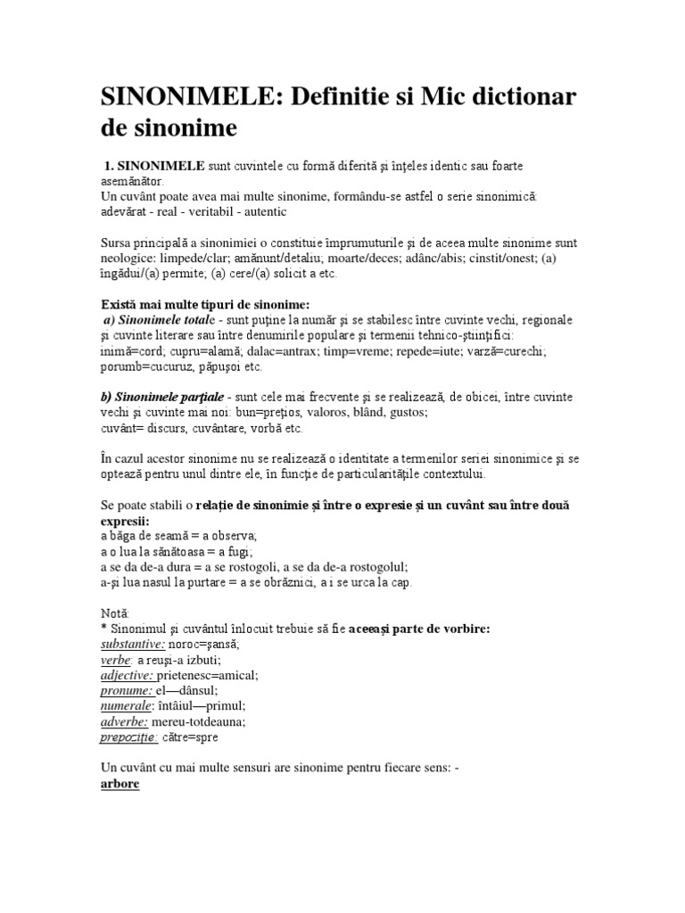 1 Notează Cate Un Sinonim Pt Sensul Sin Text Al Cuvintelor Si Al