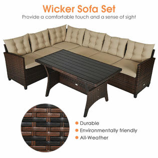 Gymax Gys03742 3pcs Rattan Dining Set Patio Furniture 6 Seats Sofa