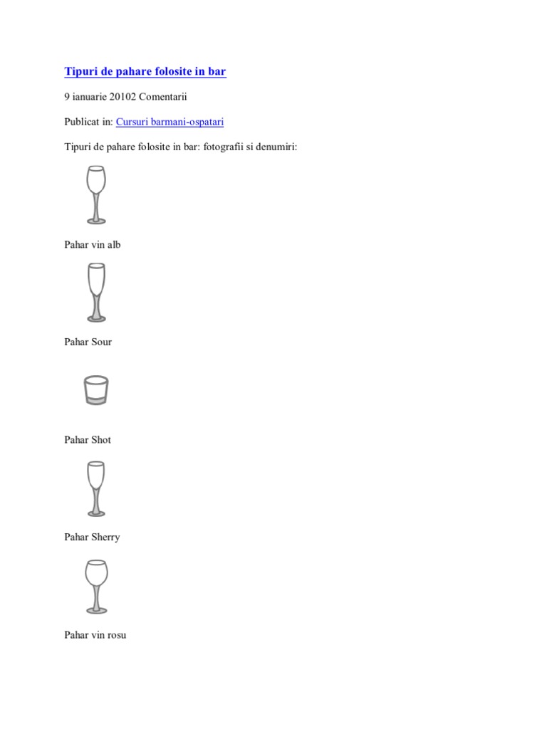 Tipuri De Pahare Folosite In Bar