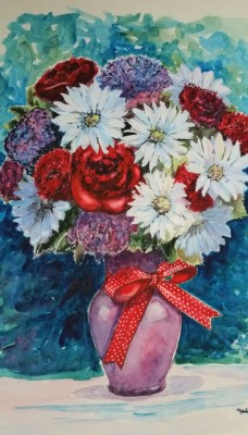Pictura In Acuarela Vaza Cu Flori Realism Okazii Ro