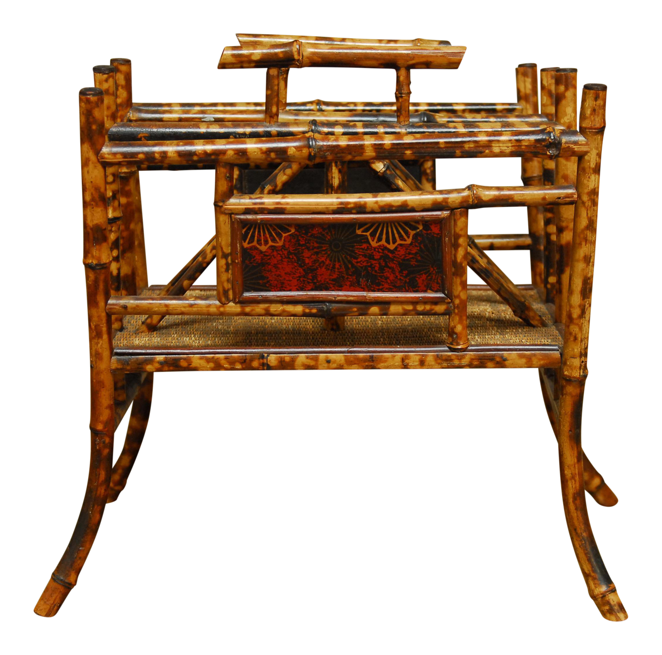 Vintage English Tortoise Shell Bamboo Magazine Rack Chairish
